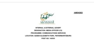 Ezemvelo KZN Wildlife is currently looking for a media officer who will be working in the programme of communications services in Queen Elizabeth Park in pietermaritzburg .The ideal candidate will make sure that public awareness on Ezomvelo mandate and facilitate as well as coordinating the interaction between media and the organisation on an ongoing basis.